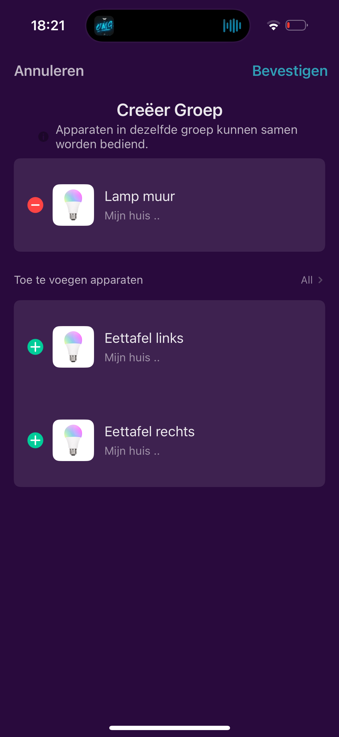 Nu lukt het me niet om meerder lampen toe te voegen aan een groep.
