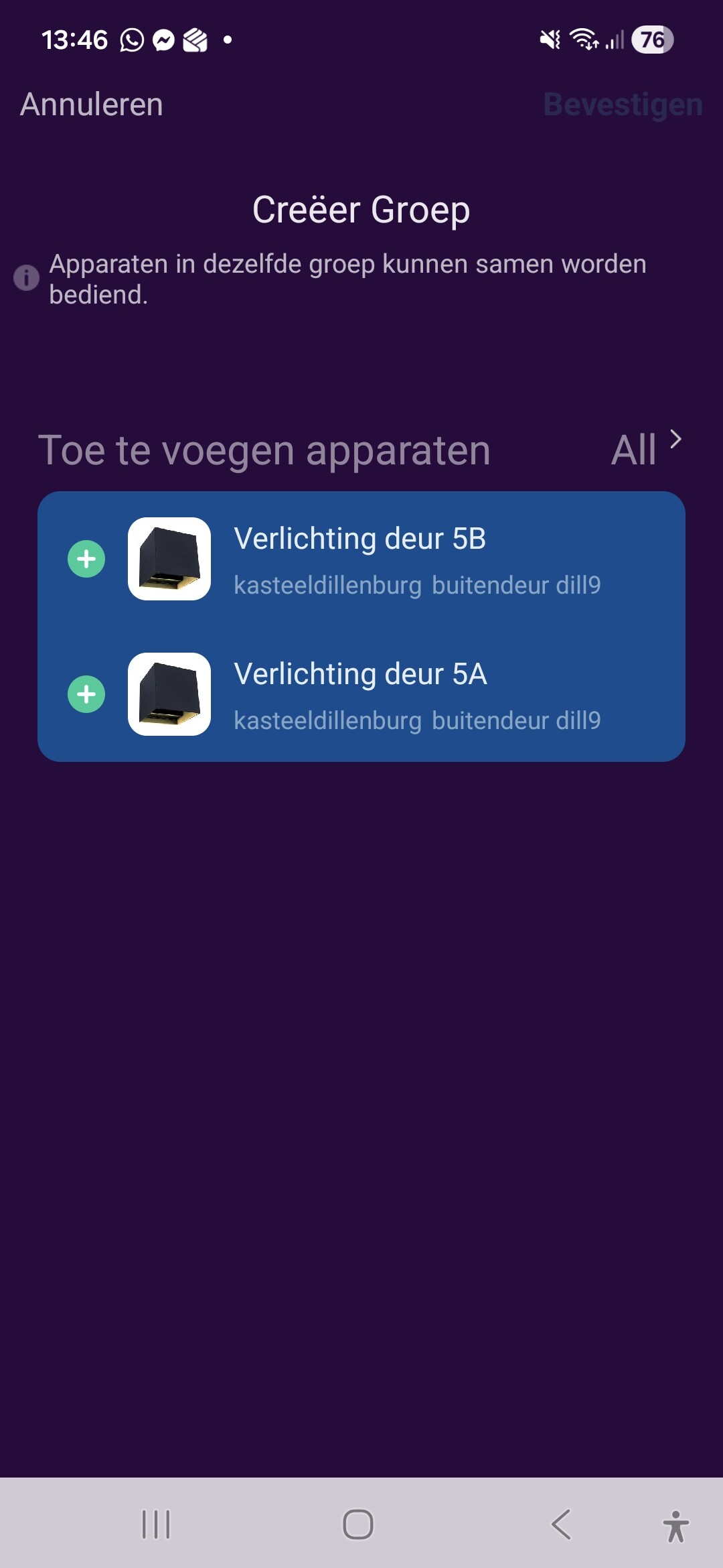 Ik kan beide lampen (alleen) toevoegen aan de groep.